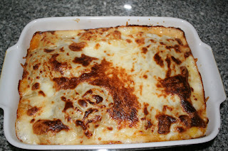 Unte com azeite um tabuleiro que possa ir ao forno e à mesa.Cubra o fundo do tabuleiro com 3 placas de lasanha, depois a carne e sempre assim ate terminar a carne, a última camada deve ser de lasanha.